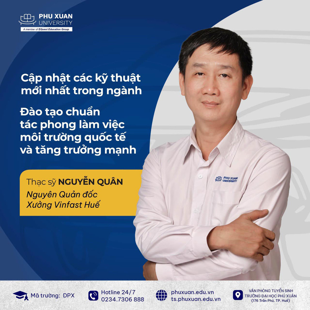 Là một trong những cơ sở đào tạo ngành CNKT ô tô tại khu vực Miền Trung - Tây Nguyên, thuộc tổ chức giáo dục EQuest, trường ĐH Phú Xuân ở TP.Huế có chương trình đào tạo 3 năm - 9 học kỳ đang được nhiều bạn trẻ lựa chọn.