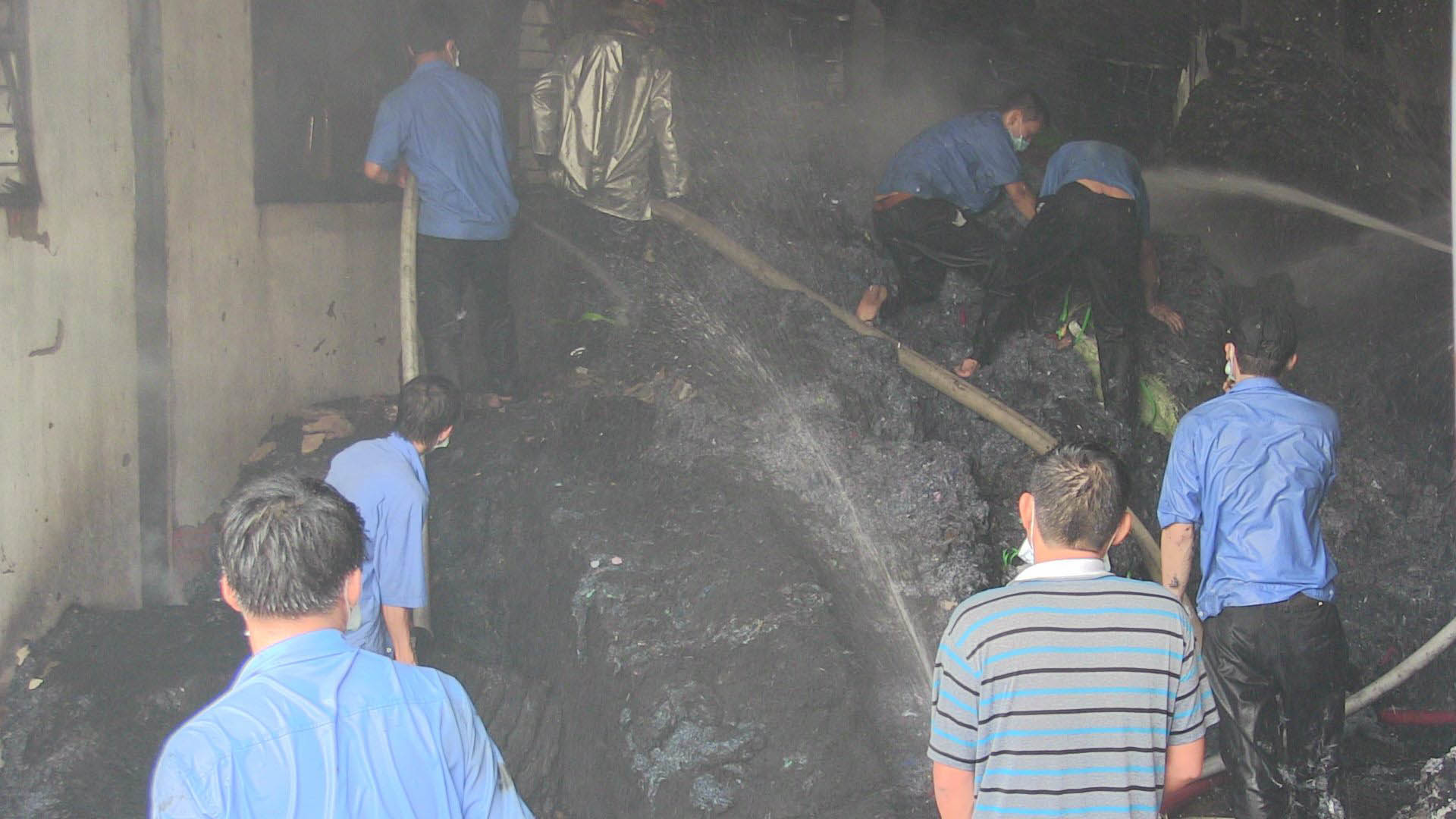 Cả chục bảo vệ của công ty cùng một số nam công nhân xông vào dập lửa nhưng bất thành.