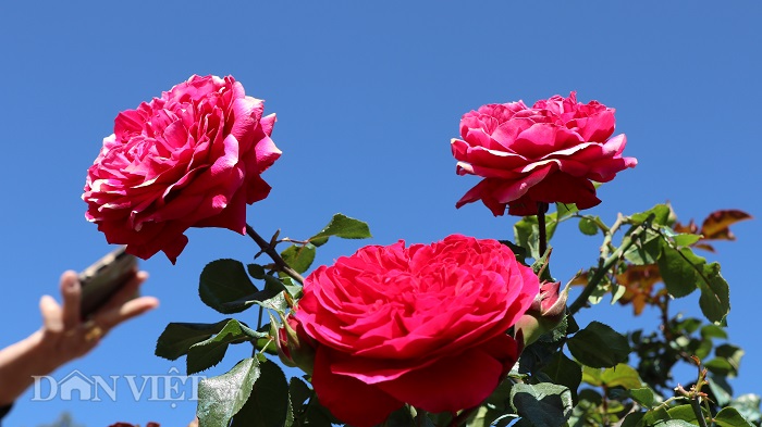 Phần tán của cây hoa hồng cổ Pháp cũng đã lên đến 1,2m. Theo anh Minh, việc chăm sóc hoa hồng không khó, quan trọng là người trồng phải thường xuyên "chơi với hoa". Nghĩa là, mỗi ngày, cần phải chăm sóc, tỉa cành, làm cỏ hay xới đất cho cây. Từ đó, niềm đam mê và tình yêu đối với mỗi gốc hoa hồng sẽ tăng dần. Điều đó đồng nghĩa với việc chủ nhân của chúng sẽ cố gắng tạo ra những thế, dáng đẹp cho cây.