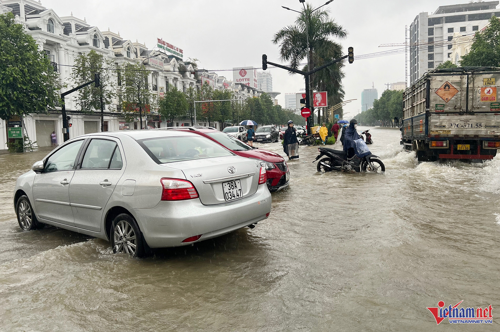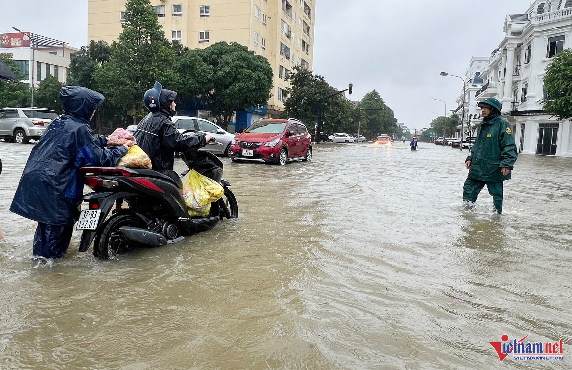 Hôm nay (23/9), ghi nhận PV VietNamNet, ở TP. Vinh (Nghệ An) thời tiết có mưa to liên tục trong khoảng 8 tiếng đồng hồ, làm cho nhiều tuyến đường bị tê liệt vì bị ngập sâu trong nước. Nhiều vị trí ngập sâu từ 60cm đến khoảng 100cm.