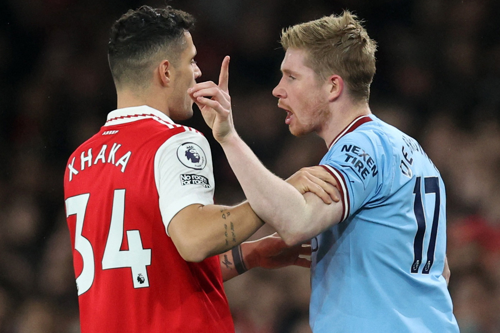 Để hạn chế không gian của De Bruyne, Mikel Arteta chờ đợi vào khả năng chiến đấu mạnh mẽ của Xhaka.