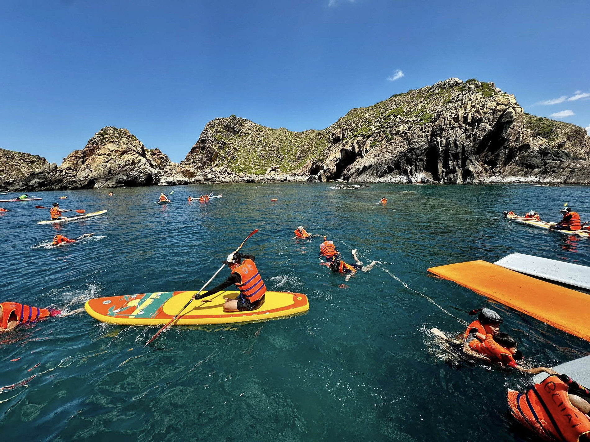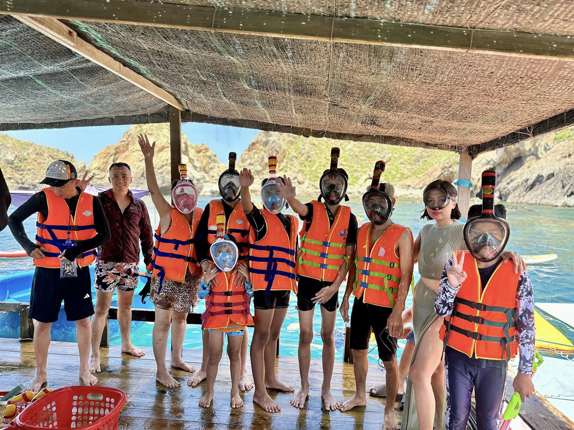 Ngoài 2 tour du lịch tới Cù Lao Xanh (còn gọi là đảo Vân Phi) và Kỳ Co - Eo Gió, gia đình 11 người còn trải nghiệm nhà phao trên biển, ghé thăm trung tâm khám phá khoa học ở Quy Nhơn.