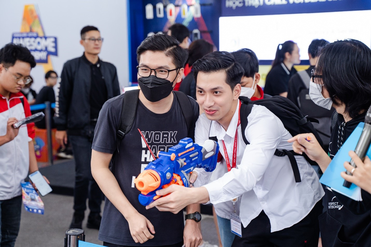 Minh Huy (19 tuổi, sinh viên ĐH Hà Nội) chia sẻ: “Tôi đến để cổ vũ cho các bạn thí sinh. Trong quá trình nghỉ giữa các trận đấu, tôi cùng bạn bè trải nghiệm các trò chơi tại đây và rất thích bầu không khí mà chương trình đem lại”.