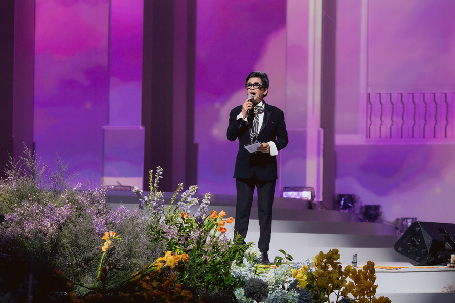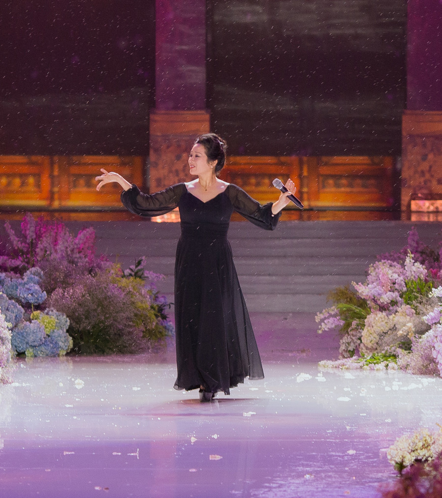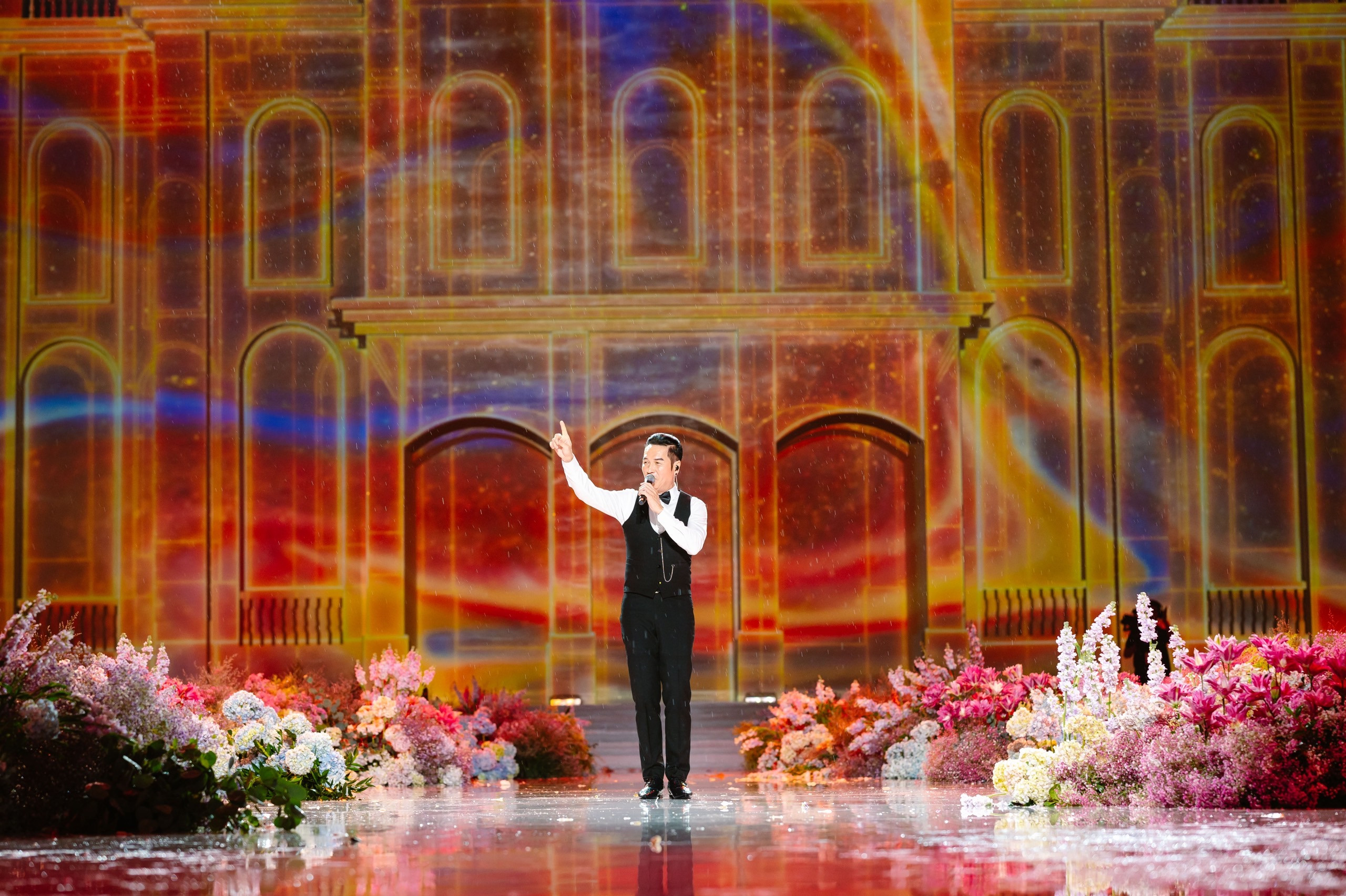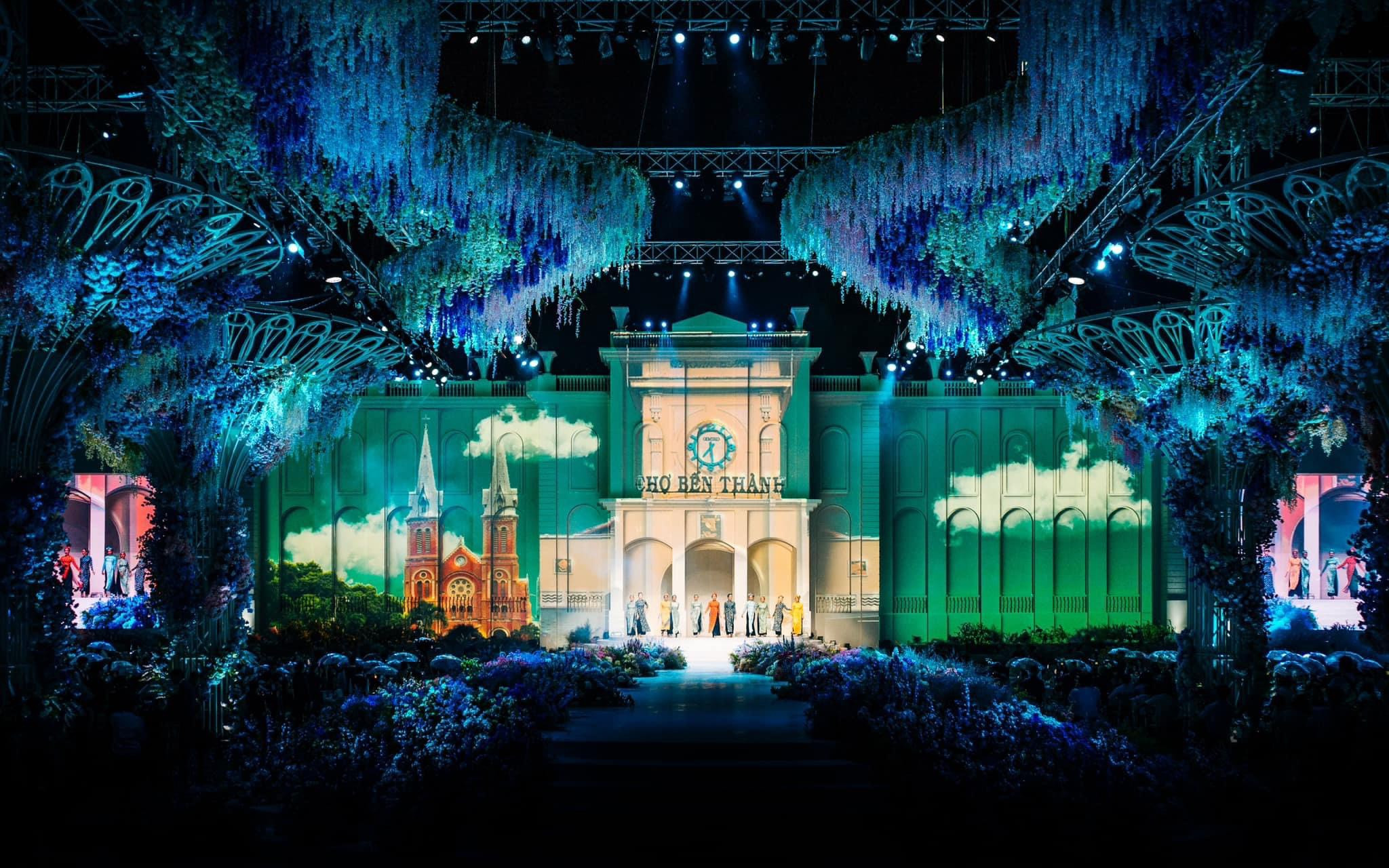 "’Khu vực sảnh tiệc được trang trí bởi 25 tấn hoa lụa và 5 tấn hoa tươi, sử dụng hơn 2000 m2 gỗ MDF sơn chống nước tạo hình nghệ thuật, được dàn dựng thi công liên tục suốt 6 tháng. Cụ thể, mặt dựng mapping lớn nhất với 700 m2, sử dụng hơn 10.000 m3 layer truss, 1000 m khung truss sản xuất riêng với kích cỡ đặc biệt. Toàn bộ bề mặt được phủ ánh sáng và visual mapping nghệ thuật được trình chiếu bởi 6 thiết bị chuẩn quốc tế công suất 30.000 asilumen", nam đạo diễn tiết lộ.
