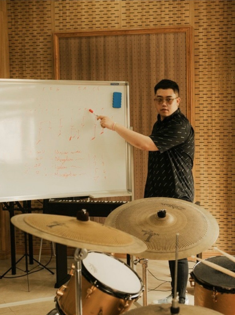 "Khi còn là sinh viên tại Nhạc viện, tôi phải dùng nồi cơm điện thay trống để tập luyện mỗi ngày. Khi nào có tiết trên giảng đường, tôi và các bạn mới có cơ hội chạm tay vào bộ trống thật. Nhưng bây giờ, học viên chỉ đến lớp trống buổi tối sau khi tan ca không kiên trì được như vậy", anh nói.