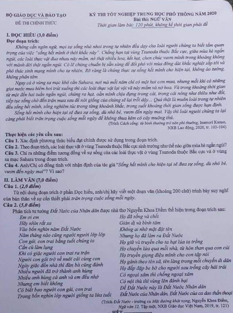 Do ảnh hưởng của dịch Covid-19, kỳ thi được tổ chức thành 2 đợt. Sau đây là đề Ngữ văn thi tốt nghiệp THPT năm 2020 đợt 1 và đợt 2.