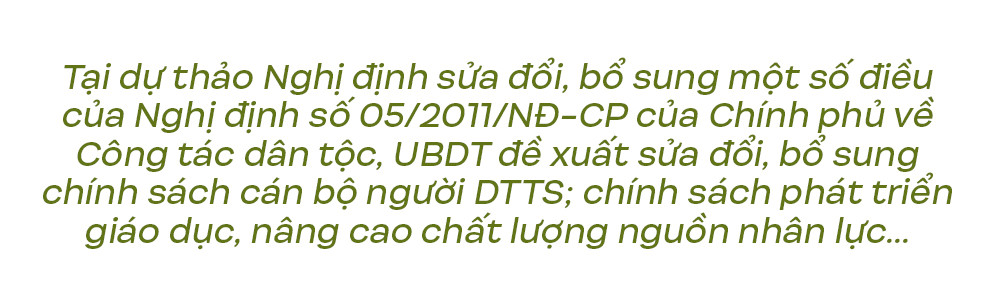 Cụ thể như: Cơ chế, chính sách ưu đãi thúc đẩy phát triển kinh tế tập thể, hợp tác xã vùng đồng bào DTTS và miền núi; Chính sách hỗ trợ ăn trưa đối với trẻ em nhà trẻ người DTTS, con hộ nghèo tại các cơ sở giáo dục mầm non tại vùng kinh tế - xã hội đặc biệt khó khăn; Chính sách thu hút, trọng dụng nhân tài là người DTTS; Chính sách hỗ trợ đối với nghệ nhân trong việc tổ chức duy trì, bảo tồn, truyền dạy văn hoá truyền thống trong cộng đồng…
