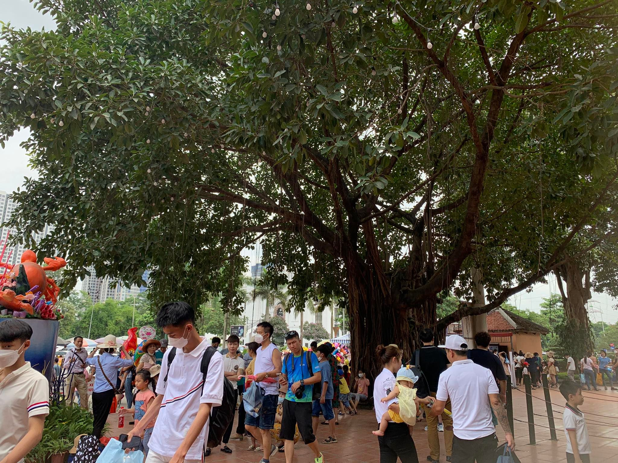 "Nhà mình đến vào khoảng 9h sáng, đúng giờ cao điểm nên vô cùng đông xe. Ô tô phải đậu cách cổng chính gần 1km. Đưa các con vào đến bên trong thì khu vực nào cũng chật ních người, cộng thêm nắng nóng. Mình vừa đi vừa quạt, lau mồ hôi cho con. Ban quản lý liên tục phát loa thông báo bố mẹ lạc con, mất đồ...", chị Vi kể. "Mình từng tới đây vài lần nhưng chưa bao giờ gặp cảnh khốn khổ thế này. Rút kinh nghiệm, lần sau mình không đưa con đi chơi dịp lễ nữa", chị Vi nói thêm.