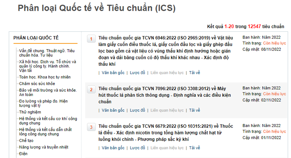 Từ đó tìm kiếm được các TCVN đúng với nhu cầu sử dụng. Đồng thời đây là các phân loại quốc tế cho nên sẽ tìm được những TCVN tương đương hoặc cùng nội dung với các tiêu chuẩn quốc tế khác.