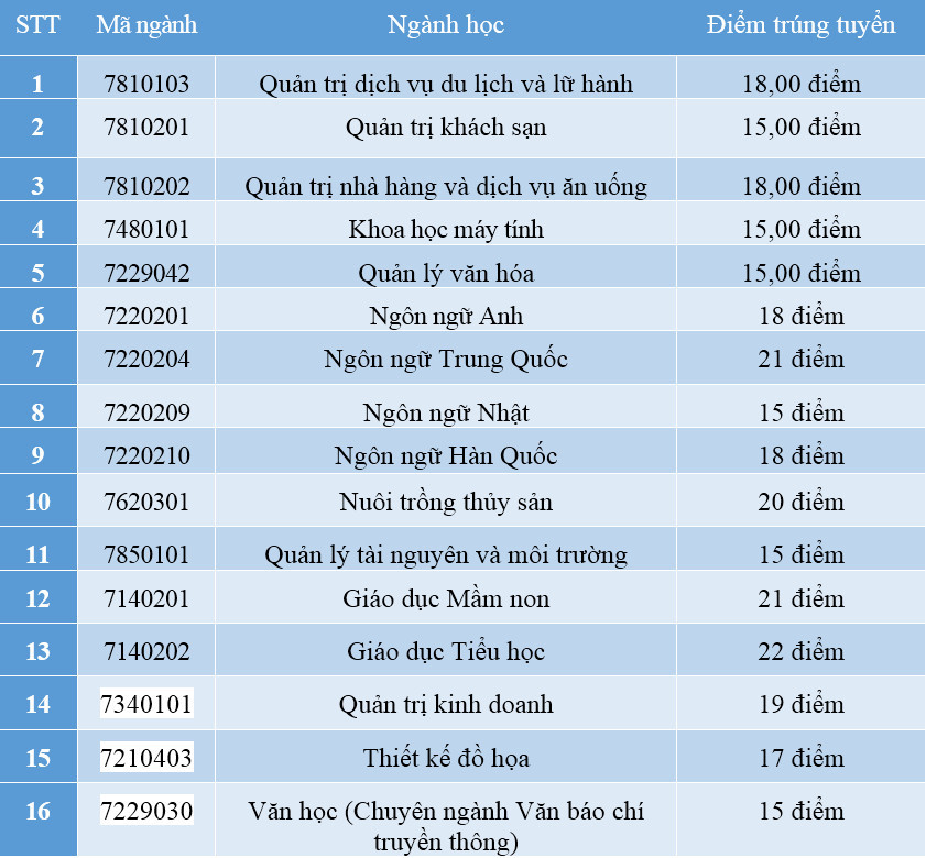 Ngành Ngôn ngữ Hàn Quốc tăng 3 điểm, điểm chuẩn là 18 điểm, ngành Nuôi trồng thủy sản tăng 5 điểm, điểm chuẩn là 20 điểm.