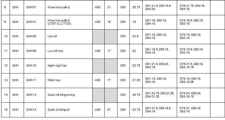 Dưới đây là điểm chuẩn Trường ĐH Khoa học xã hội và Nhân văn (ĐH Quốc gia Hà Nội) năm 2019 để thí sinh có thể tham khảo: