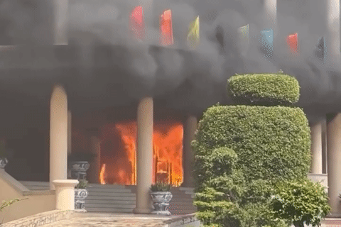 Vụ việc không gây thiệt hại về người, tuy nhiên nhiều đồ trang trí, âm thanh, bàn ghế bên trong phòng họp A bị hư hỏng. Bước đầu, nguyên nhân được nhận định do chập điện.