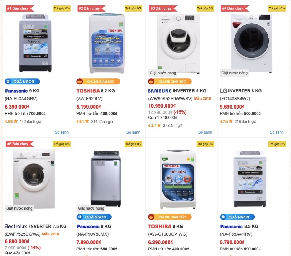 Máy giặt của nhiều hãng cũng đua giảm giá. |