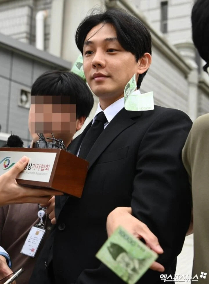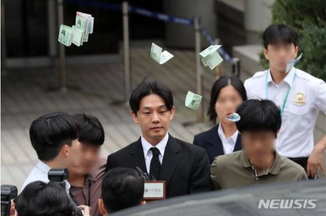Sáng 21/9, nam diễn viên Yoo Ah In có mặt ở cơ quan điều tra để tham dự buổi chất vấn. Khi đang di chuyển từ phiên toà thẩm vấn sang khu vực đợi lệnh, Yoo Ah In đã bị một người dân phẫn nộ ném một xấp tiền vào mặt và nói: "Mang đến nhà tù mà dùng!".