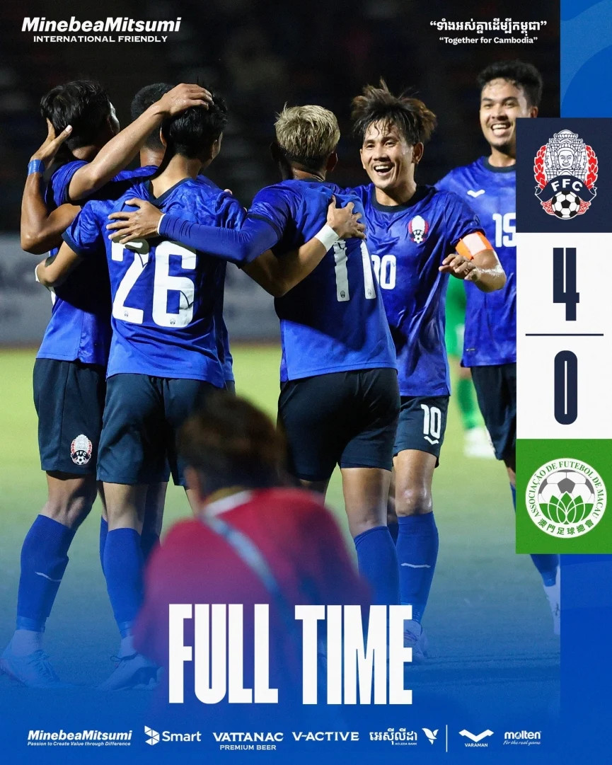 Chiến thắng tưng bừng 4-0 của đội bóng xứ sở Chùa tháp được ấn định ở phút 80, nhờ pha dứt điểm chính xác của Roeung Bunheang.