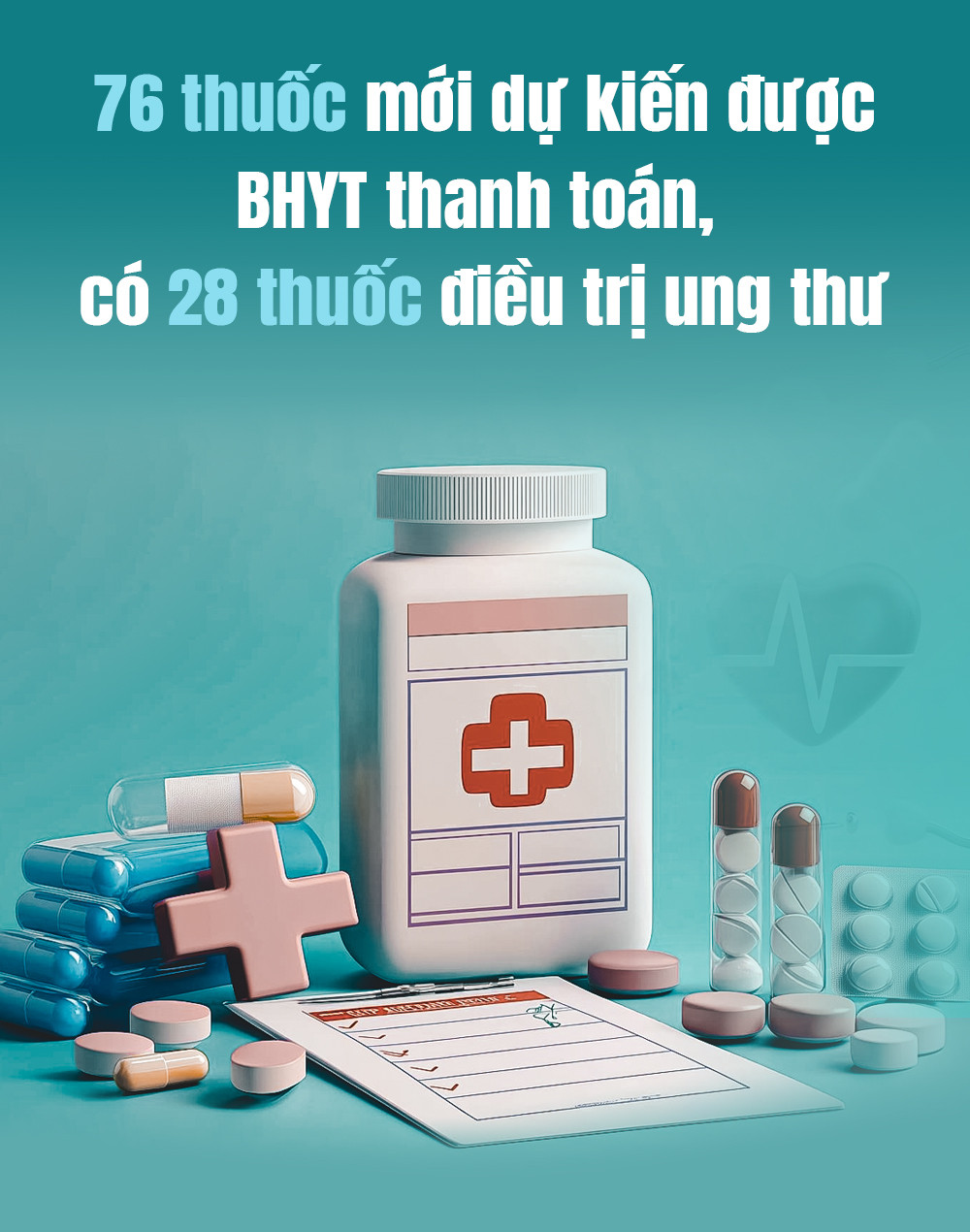 Có 76 thuốc mới được Bộ Y tế dự kiến đưa vào danh mục Bảo hiểm y tế thanh toán, trong đó có 28 thuốc điều trị ung thư và điều hòa miễn dịch.