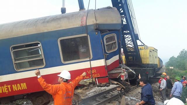 Ông Trần Hoán, Giám đốc Công ty CP Quản lý đường sắt Bình Trị Thiên cho biết, lực lượng công nhân đã huy động tối đa cùng với 4 trục cẩu đường bộ và đường sắt, trong gần 20 giờ kể từ khi tai nạn xảy ra, đã đưa được đầu máy và 5 toa tàu ra khỏi đường ray.