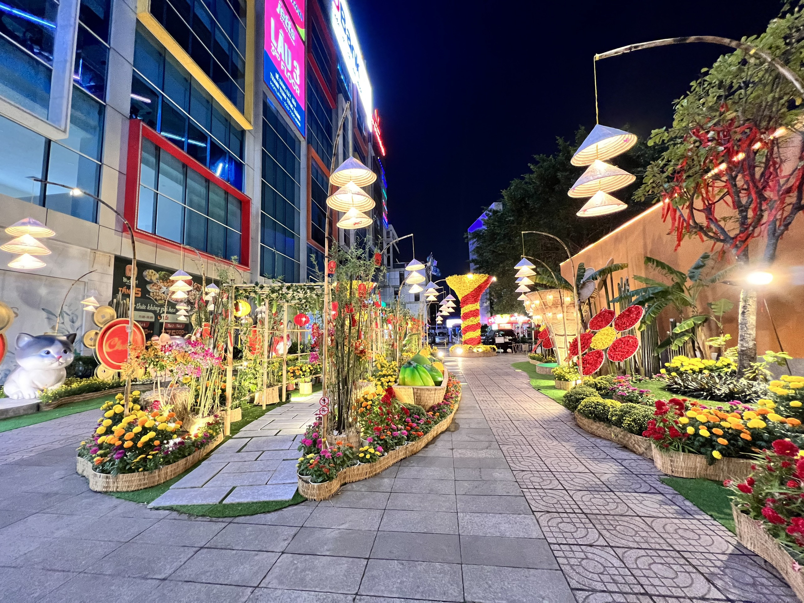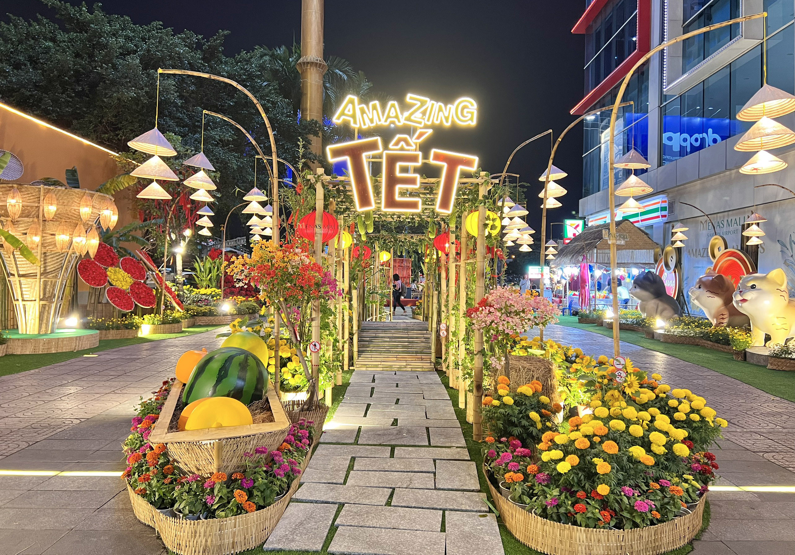 Nơi tấp nập nhất của đường hoa Amazing Tết 2023 là khu vực Cây Lộc, với đông đảo khách tham quan gửi gắm những lời chúc, mong ước trong năm mới. Du khách còn thích thú với Làng ẩm thực Yum Food Village tại tầng 5 tòa nhà Menas. Nơi đây là “thiên đường” để tận hưởng toàn bộ đường hoa từ trên cao và thưởng thức hàng trăm món ngon.