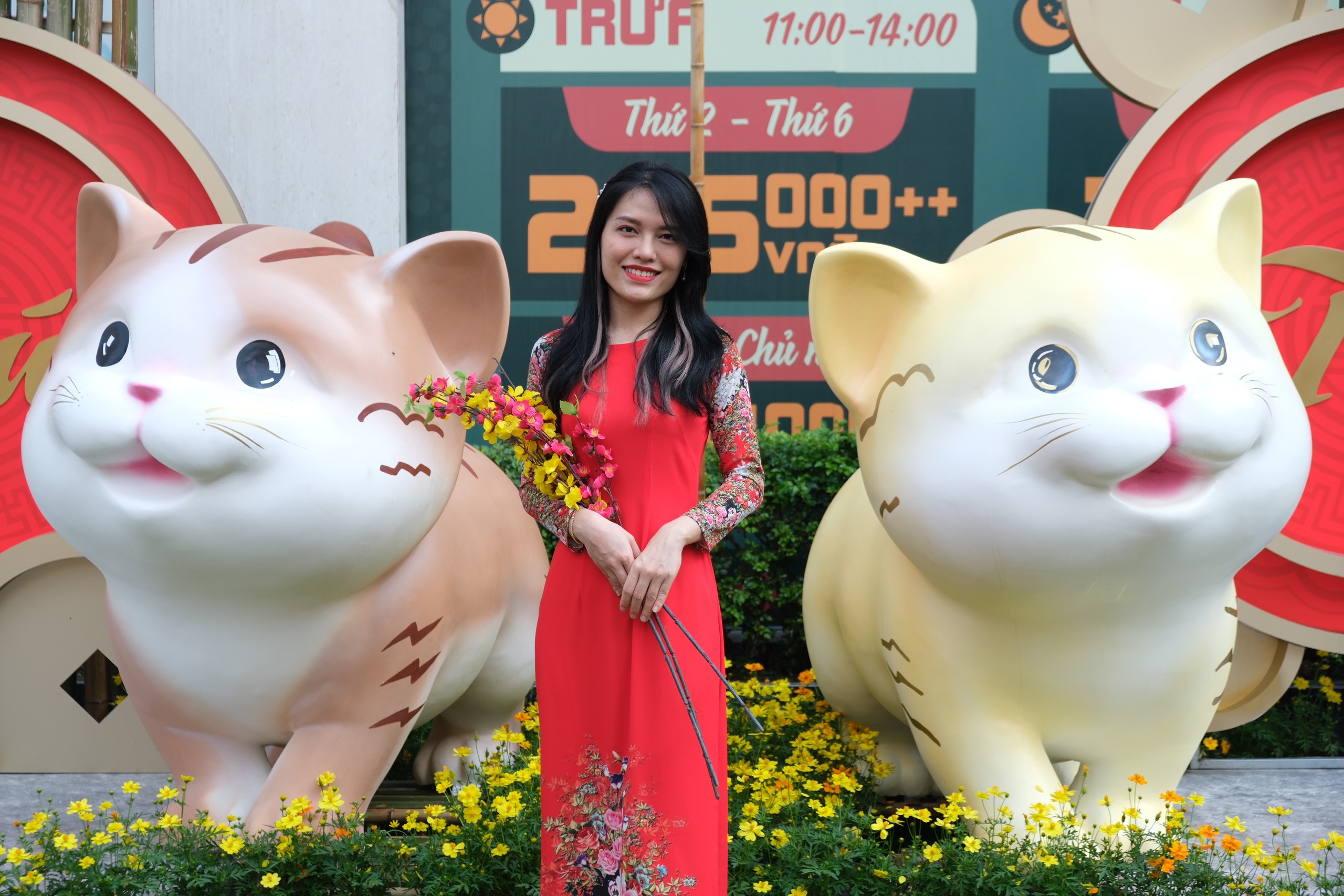 Các đường hoa với điểm nổi bật là linh vật mèo nằm ở trung tâm. Bên cạnh đó là khu Đường Làng, Bàn Ông Đồ cho chữ với những nét bút thư pháp uốn lượn. Khu Gùi Tây Nguyên cũng được đông đảo du khách ghé thăm với mong ước gặp may mắn trong năm mới.