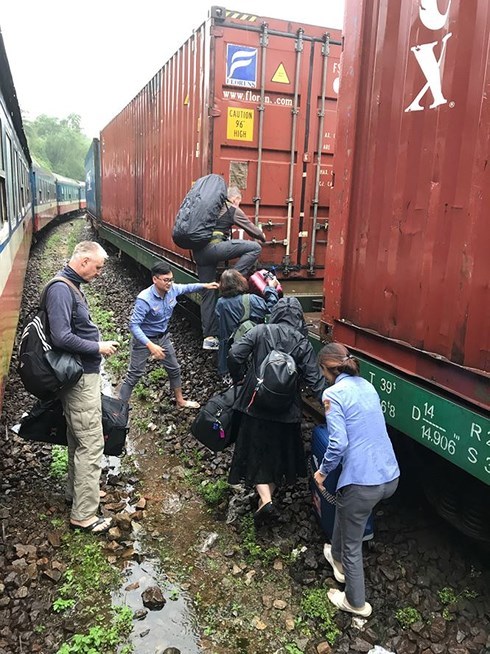 Tại hiện trường, nhiều hành khách, trong đó có hành khách nước ngoài đã xuống tàu, tự tìm phương tiện đi tiếp vào Đà Nẵng.