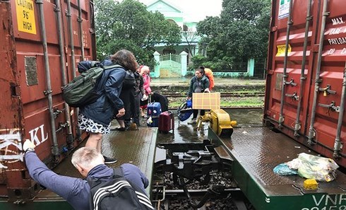 | Du khách nước ngoài loay hoay tìm hướng tiếp tục hành trình sau khi đoàn tàu SE3 gặp sự cố sạt lở núi ở khu vực đèo Hải Vân. Ảnh: Vũ Lương |