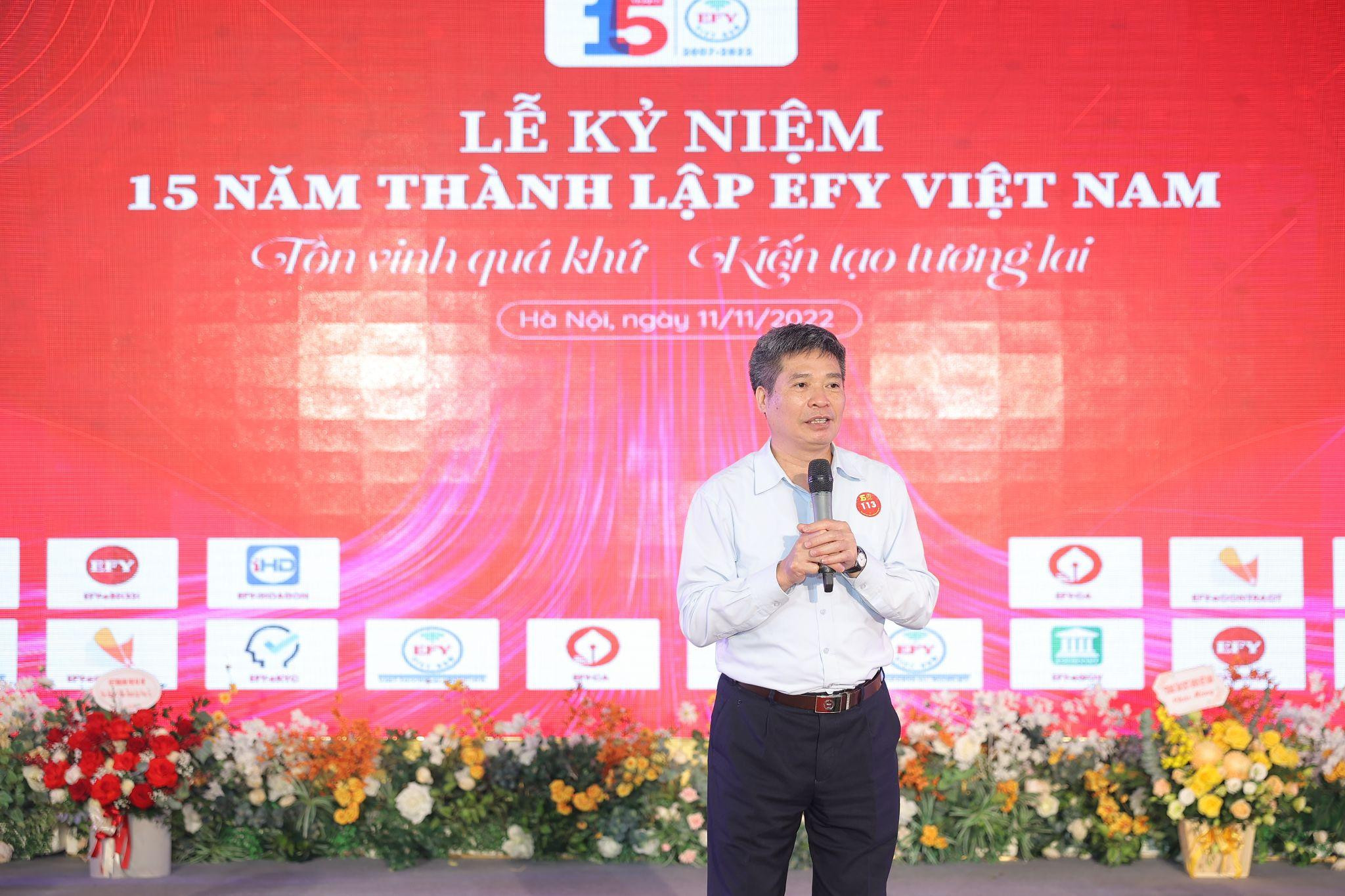 Phát biểu khai mạc tại buổi lễ, ông Hoàng Văn Thuấn - Chủ tịch HĐQT, Tổng Giám đốc EFY Việt Nam bày tỏ: “Ngày 14/11/2007 EFY Việt Nam chính thức ra đời. Hành trình 15 năm xây dựng và phát triển cũng trải qua đủ các cung bậc của cảm xúc: lúc thành công, lúc thất bại, có điều chia sẻ được, có điều chưa chia sẻ được… Có lẽ thành công là đi từ thất bại này đến thất bại khác mà không mất lòng nhiệt thành và quyết tâm vươn lên. Khi khởi nghiệp, EFY đã lựa chọn ngành nghề chính là lĩnh vực CNTT - một ngành nghề không đòi hỏi nhiều các điều kiện nguồn lực khác ngoài năng lực chuyên môn và cần có phẩm chất tốt”.