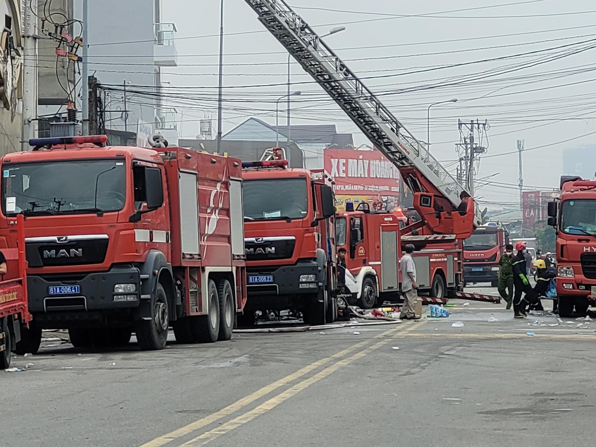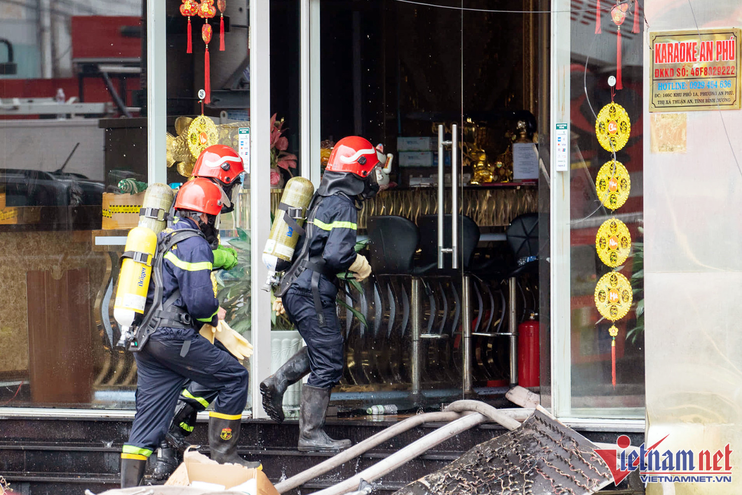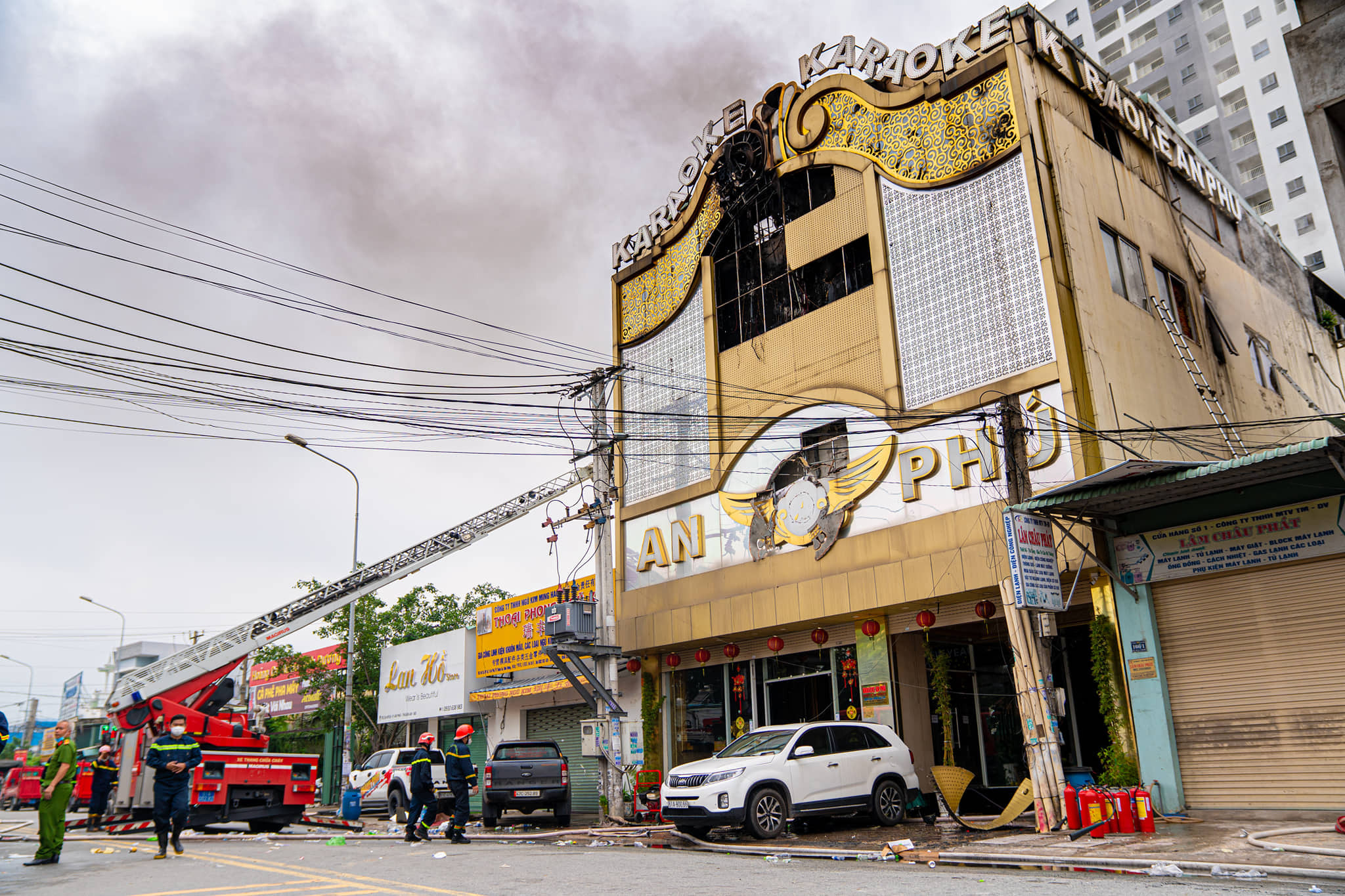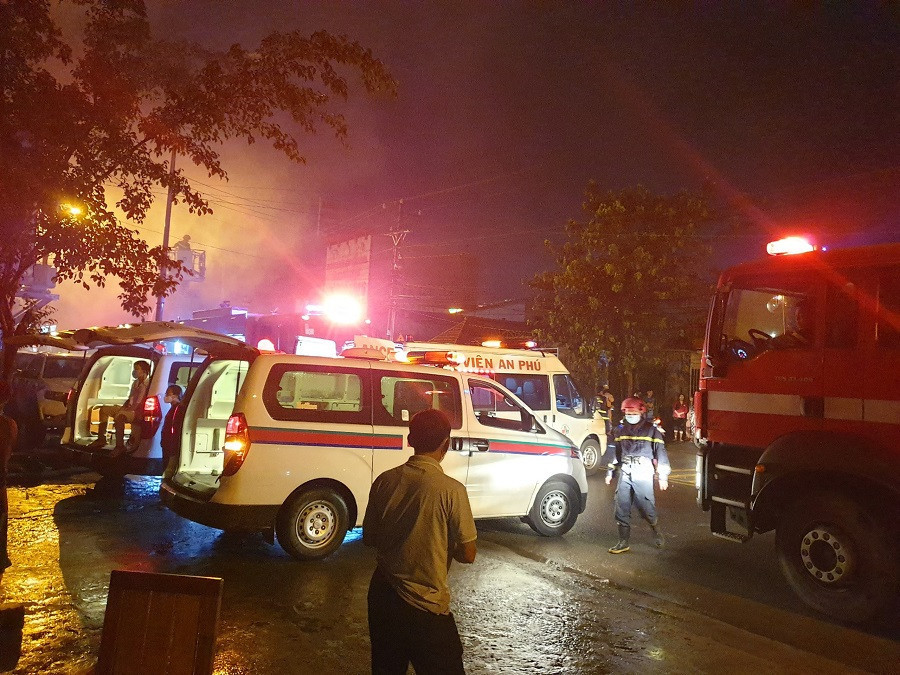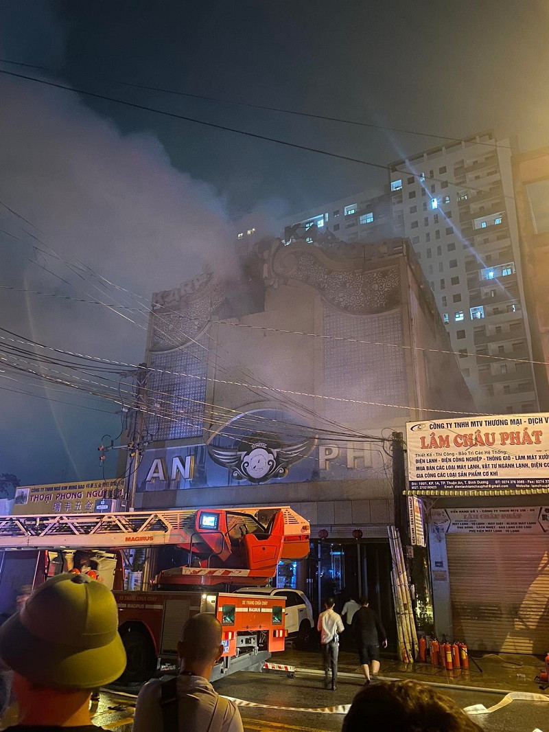 The fire broke out at the An Phu karaoke bar on Tran Quang Dieu Street, Thuan An City, at a round 9pm. The fire raged so violently on the upper floor that some staff and guests singing in the bar could not escape the bar. Many were trapped inside, said people who managed to get out of the burning bar. Some jumped out to escape the fire and they suffered injuries.
