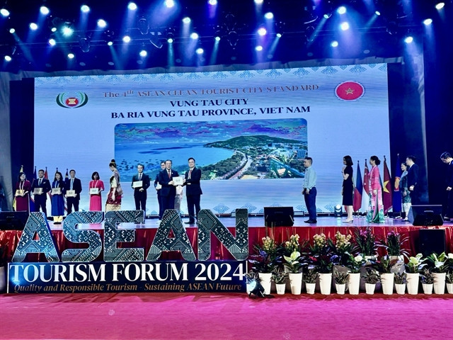 | The coastal city of Vũng Tàu in Bà Rịa – Vũng Tàu Province receives the fourth ASEAN Clean Tourist City Standard for the 2024-2026 period at a ceremony in the Lao capital Vientiane on January 26. VNS Photo |