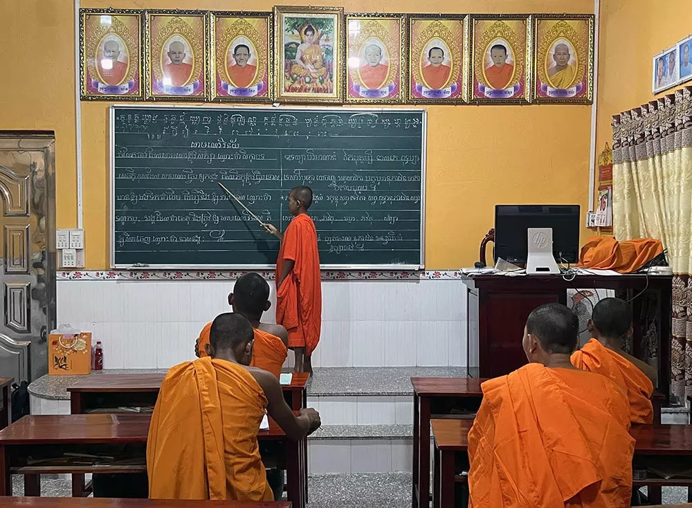 When summer comes, monk Chau Soc Thon teaches Khmer script to ethnic children in the area. Every afternoon, the class resounds with the sounds of words of the teacher and the children.