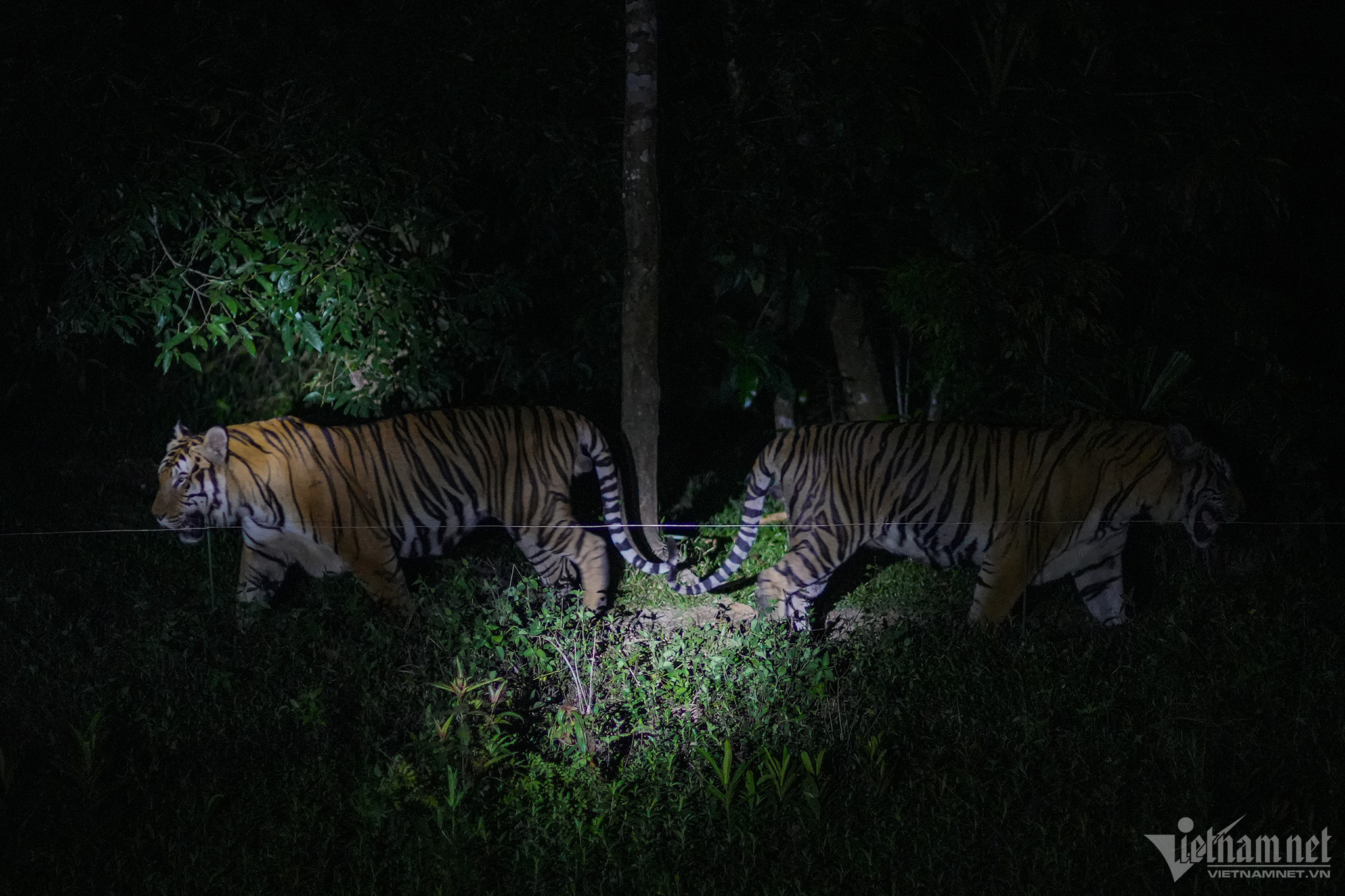 Under flashlight, Trang observed two Bengal tigers - rare animals living mainly in Bangladesh, India, Nepal...