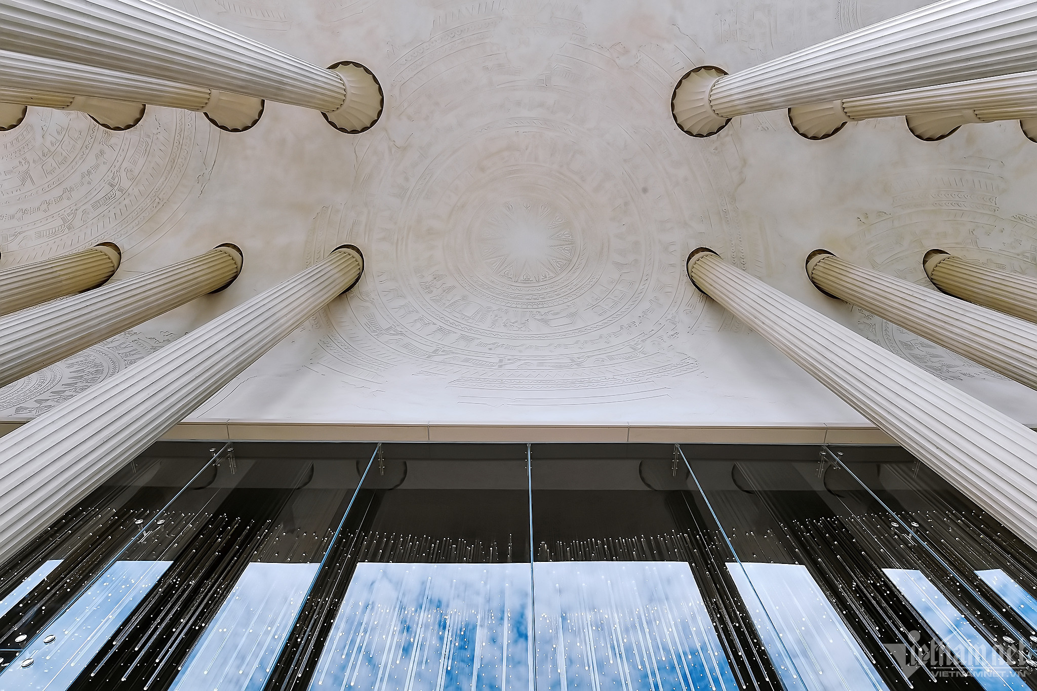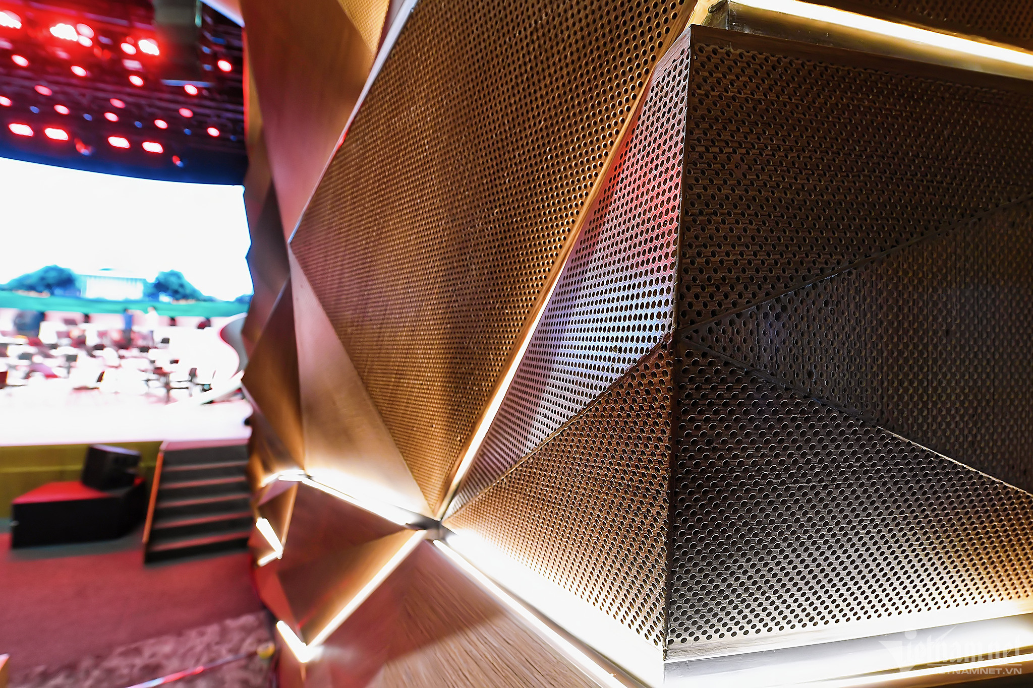 Every design detail of the roof system and interior of the theater recreates a part of the history of the Vietnamese people through traditional patterns representing Vietnamese culture, such as the sun, crane, Dong Son bronze drums, and ethnic musical instruments.
