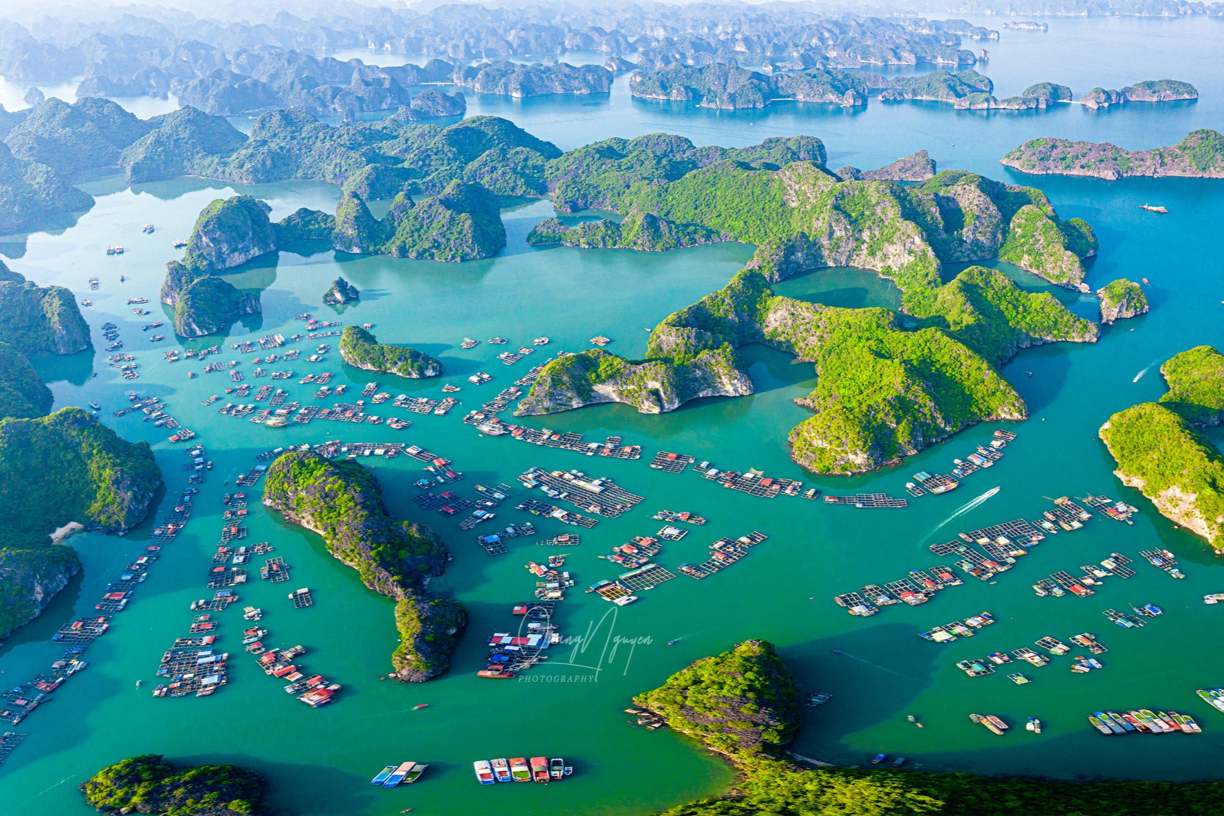 At Cai Beo, visitors will have an interesting experience if they rent a boat wandering among the raft-based fish-farming households. While on the boat, they can admire the beauty of Cai Beo's picturesque scenery and learn about the life of the fishing people.