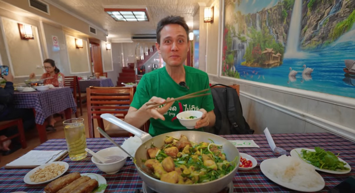 During his latest visit to Vietnam, Mark was in Hanoi. He visited a restaurant on Giang Vo street in Ba Dinh district to enjoy a famous specialty of the capital city – Cha ca La Vong (grilled fish, cooked with noodles and scallions in a charcoal brazier).