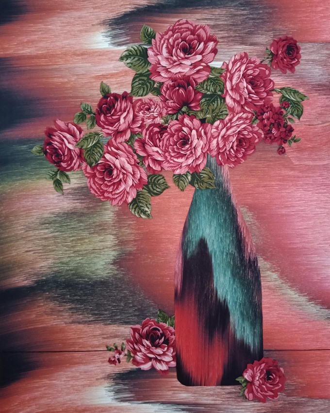 Art critic Nguyễn Hải Yến said she couldn’t stop staring at the painting Beautiful Flower. “Using cloth, Huyền portrays a young girl swinging in a colourful cloud,” said Yến. “The artwork reaches the peak of harmony and peacefulness.”