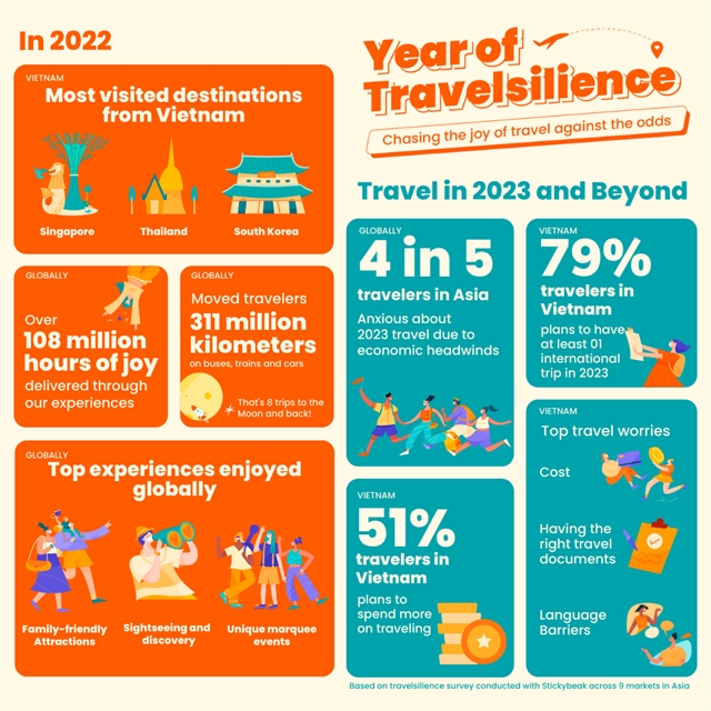In Vietnam, even though 75 per cent are worried about travel given economic uncertainties, 79 per cent plan to have more than one international trip in 2023, and 45 per cent plan to stay abroad for 10+ days.