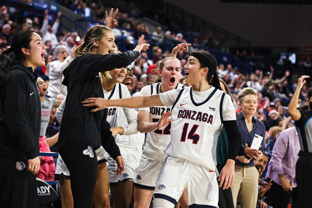 Trương Thảo Vy, aka Kaylynne Trương (14), having a great season with Gonzaga University in NCAA. Photo Gonzaga Women's Basketball |