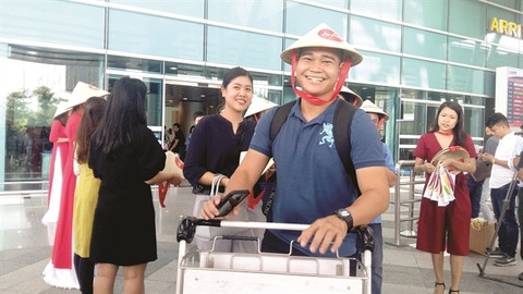 A Thai tourist is welcomed at Đà Nẵng International Airport. The central city of Đà Nẵng called for the launch of more direct flights from Thailand and Indonesia to Đà Nẵng. — Photo courtesy of Trần Lê Lâm