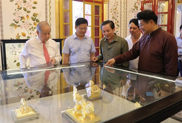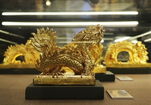 A collection of 56 ceramic and gold-plated dragons inspired by the Nguyễn Dynasty are on display at an exhibition in the Kiến Trung Palace in the Huế Imperial Citadel.