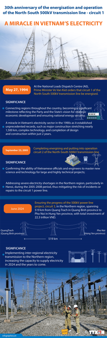 This facility helped connect the power systems of the three regions nationwide, becoming an important turning point that reflects the Party and State’s vision about economic development and national energy security, as well as the Vietnamese people’s mettle, wisdom, and creativity in the Doi moi (Renewal) period.