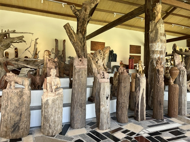 Lê Ngọc Thuận, the founder of driftwood village studio in Hội An, said the 20-piece firewood sculpture collection, which was chosen from more than 100 sculptures, had been transformed from firewood and debris into stunning sculptures and interior decorations by carpenters of Kim Bồng carpentry village in Hội An.
