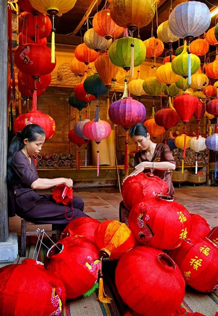 | Craftswomen making lanterns in Hội An ancient town. Lanterns are one of various traditional handmade trades of Hội An. Photo courtesy of Hội An City's Culture and Sports Centre |