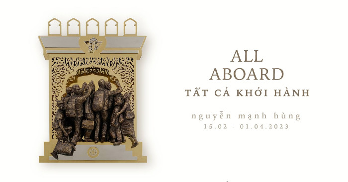 Some prepare for their post-life with sophisticated funeral rituals; others fill their luggage with only good karma hoping to arrive at a place that may not exist. In his characteristically playful adaptation of everyday scenarios, Nguyen Manh Hung’s latest series of work in the exhibition ‘All Aboard’ conjures up a highly contrasting and absurd pairing: a frenzied crowd hurriedly and narrowly holding onto a sacred gate, which leads to the unknown.