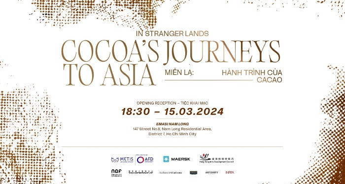 Nguyen Art Foundation (NAF) proudly invites you to the opening reception of In Stranger Lands: Cocoa’s Journeys To Asia, a two-part exhibition curated by Caroline Ha Thuc, featuring 17 newly commissioned artworks from established artists working across Asia, including Ravi Agarwal (India), Timoteus Anggawan Kusno (Indonesia), Antariksa (Indonesia), Agung Firmanto Budiharto (Indonesia), Bui Cong Khanh (Vietnam), Cian Dayrit (Philippines), Cyril Delettre (Hong Kong), Veronica Emery (Hong Kong), Jiandyn Collective (Thailand), Jason Lim (Singapore), Pan Lu and Bo Wang (Hong Kong/Netherlands), Arin Rungjang (Thailand), Erika Tan (Singapore), Rodel Tapaya (Philippines), Ting Chaong-Wen (Taiwan), Robert Zhao Renhui (Singapore) and Zheng Mahler (Hong Kong). The exhibition will take place simultaneously across the campuses of EMASI Nam Long (District 7) and EMASI Van Phuc (Thu Duc City) from March to July 2024.