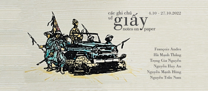 A vernacular material both in everyday life and art, paper has never ceased to inspire artists for its ubiquity, versatility, and incredible socio-historical weight – paper is synonymous with knowledge transmission and archiving. From a site where ideas could delve, paper is also a medium that evolves together with ideas as its varying sizes, textures, and thickness allow for surface and structural manipulation. Bringing together works by François Andes, Ha Manh Thang, Nguyen Huy An, Trong Gia Nguyen, Nguyen Manh Hung and Nguyen Tran Nam, ‘Notes on Paper’ highlights the kaleidoscopic nature of this unassuming material, at the same surveying the gestures that come along with it such as mark-making, painting, writing, and erasing.