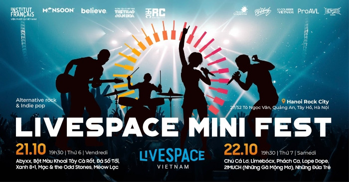 The voting round is expected to last from October 7, 2022 to October 14, 2022. Exclusive compositions that 12 bands have recorded with the support of LiveSpace Vietnam will be voted on by the public through video lyrics posted on LiveSpace Vietnam’s official Facebook page. Voting results on the LiveSpace Vietnam Facebook page will be one of the important criteria to decide the winning band. At the same time, the jury consisting of representatives from the main partners of the program (Monsoon Music Festival, Believe, Sports and Culture newspaper, HRC…) and representatives of the French Institute in Hanoi will conduct the evaluation based on performances by artists at the past 4 concerts and at the upcoming LiveSpace Mini Fest 2022.
