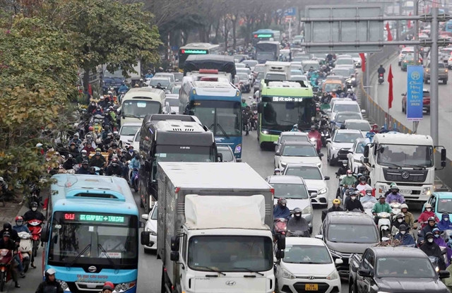 | Motorbikes, cars, buses and trucks mingle on Giải Phóng Street in Hà Nội in late January. — VNA/VNS Photo Phạm Kiên |