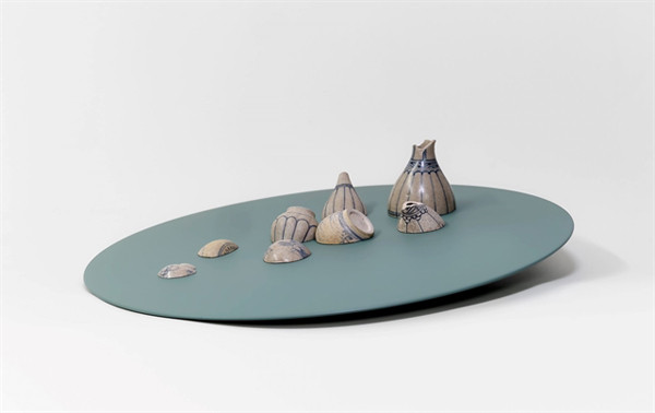 In 2019, the artist returned to Vietnam to select the necessary materials to carry out his previous ideas. During one month, he wandered every corner of Hanoi, searching in numerous shops selling ethnic decorations and ceramic antiques, then travelled to Mai Chau – a mountainous region in the North, to find discarded materials – broken ceramic pieces, handloom cloth and debris for his work.