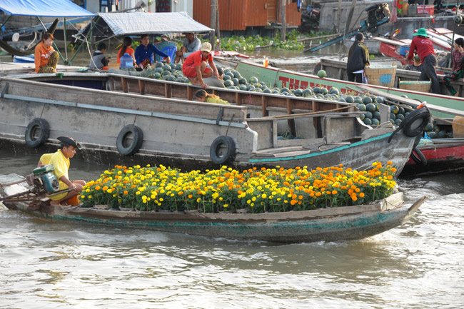 On these days, when Tet, the Lunar New Year, comes by, the floating markets become way busier than usual.