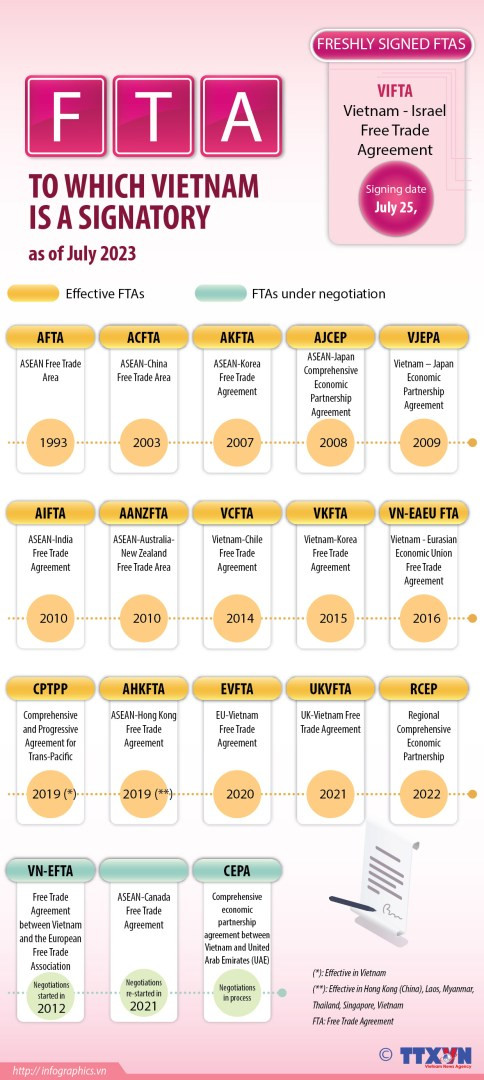 The Vietnam-Israel Free Trade Agreement (VIFTA), to take effect this year, is expected to not only open up opportunities for Vietnamese goods to access the Israeli market but also enter the broader Middle Eastern market. Meanwhile, Vietnam and the United Arab Emirates (UAE) are hoped to conclude negotiations on the Comprehensive Economic Partnership Agreement (CEPA) this year.