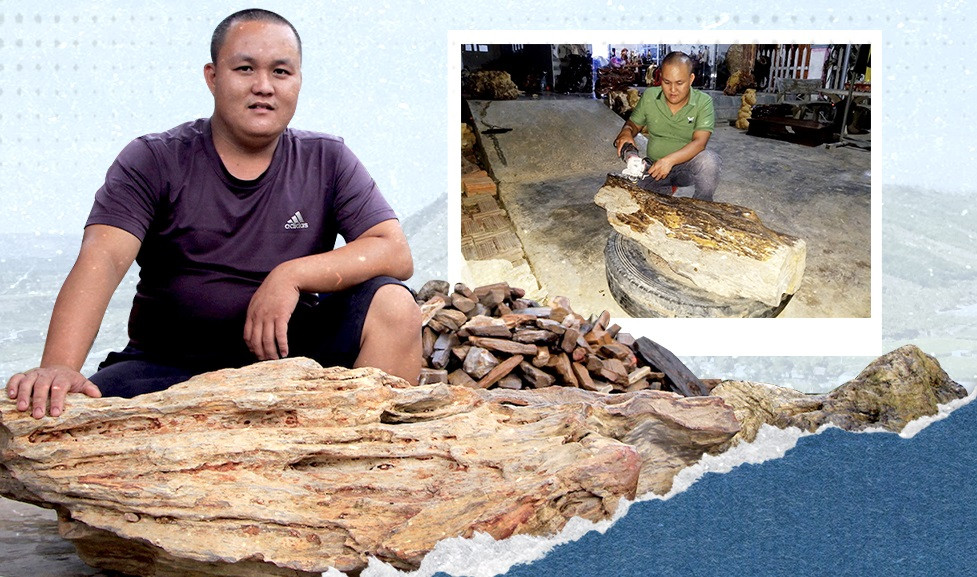 Mr. Ngoc said that he has been interested in fossil wood since 2014. He was a plumber at the time. In the afternoon, he noticed man near his house hard at work polishing raw petrified logs into gleaming, imaginative stone sculptures that he sold to consumers in Ho Chi Minh City for high prices.